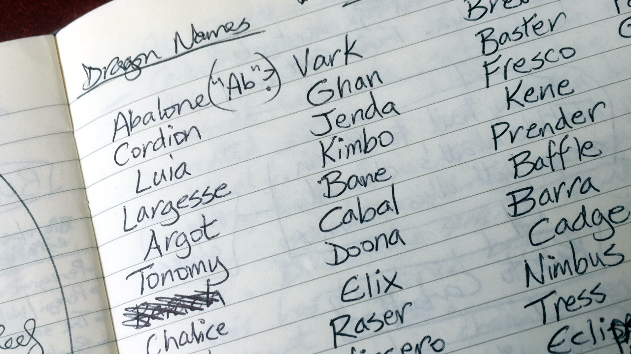 So what’s my approach? Whatever I say here, I’m sure to contradict it in the next piece of fiction I write but, by and large, I favour plain handles over fancy one. Names are like fishhooks, you see. Keep them sharp and simple and you stand a good chance of reeling in your reader. When I created the huge cast of dragons for Dragoncharm and its sequels, I used down-to-earth names like Fortune, Wood, Gossamer and Wraith. The image above shows the preliminary shortlist of names for my later fantasy novel The Dragons of Bloodrock.