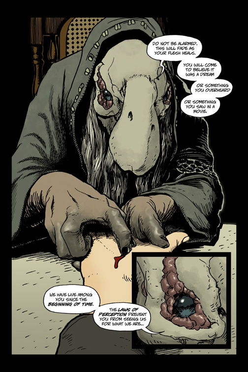 MH: We started with the concept: “What if demons lived among us but we couldn’t see them for what they were, not because of any mystical property, or wilful cloaking, but because our perception didn’t allow us to?” The way we only see a narrow band of the light spectrum. That’s interesting to us in a broader sense and we don’t think it’s been done before in quite this way. Demons don’t reveal themselves at will. They can’t, at least not in any supernatural sense. There is a mechanism but it is physical, not spiritual, for lack of a better term. So, with this core concept, we built the world out, and created not only a rule for the world we think is unique but a demon origin we haven’t seen before. Since the latter is a reveal in our franchise, we’re going to take the 5th on that answer.